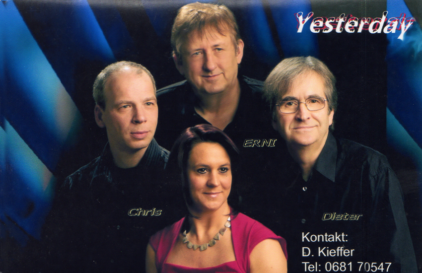 "Yesterday" - nicht nur Oldies - Das Gersweiler Quartett - ideal für Veranstaltungen und Festlichkeiten aller Art. Die beiden ehemaligen "Heartbeats", Dieter Kieffer und Erni Bredel haben im Jahr 2002 diese Band gegründet. Da noch keine eigene Website existiert, hier ein kleiner Hinweis auf diese Formation.